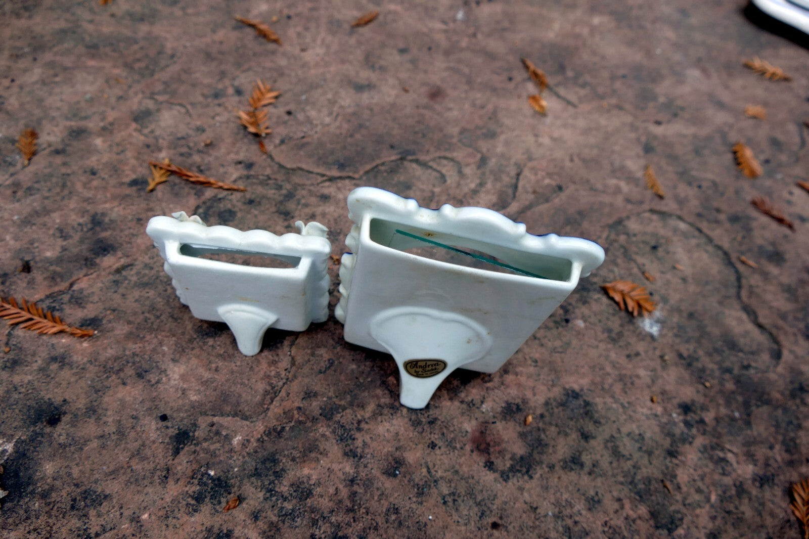 Picture Frame 3.5 X 3.5" Art Photo with Glass Teddy Bear Figural Ceramic Baby Boy