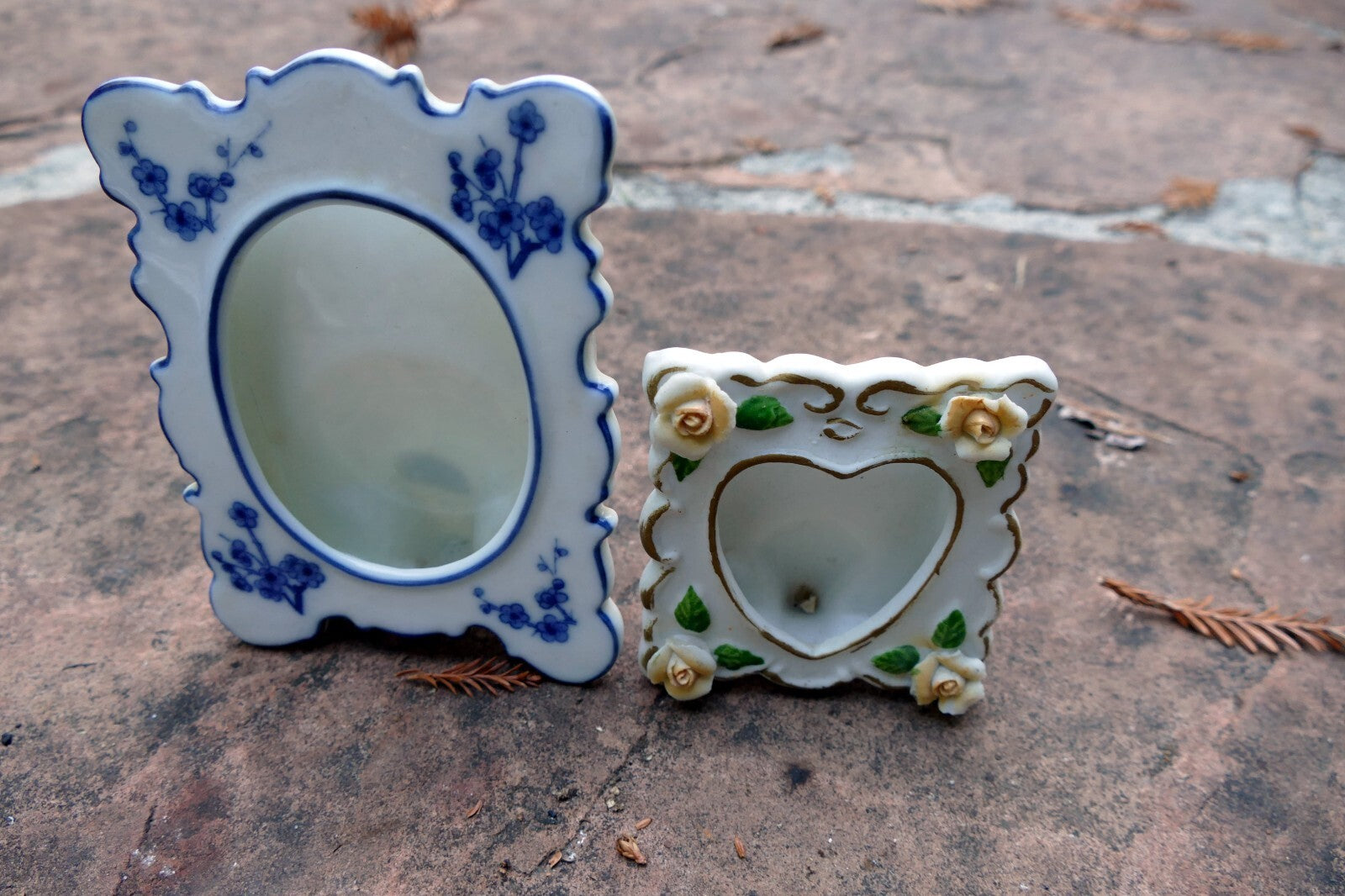 3 X 4" Andrea by Sadek Porcelain Photo Frame W/ Flowers Floral Design Blue Vintage -