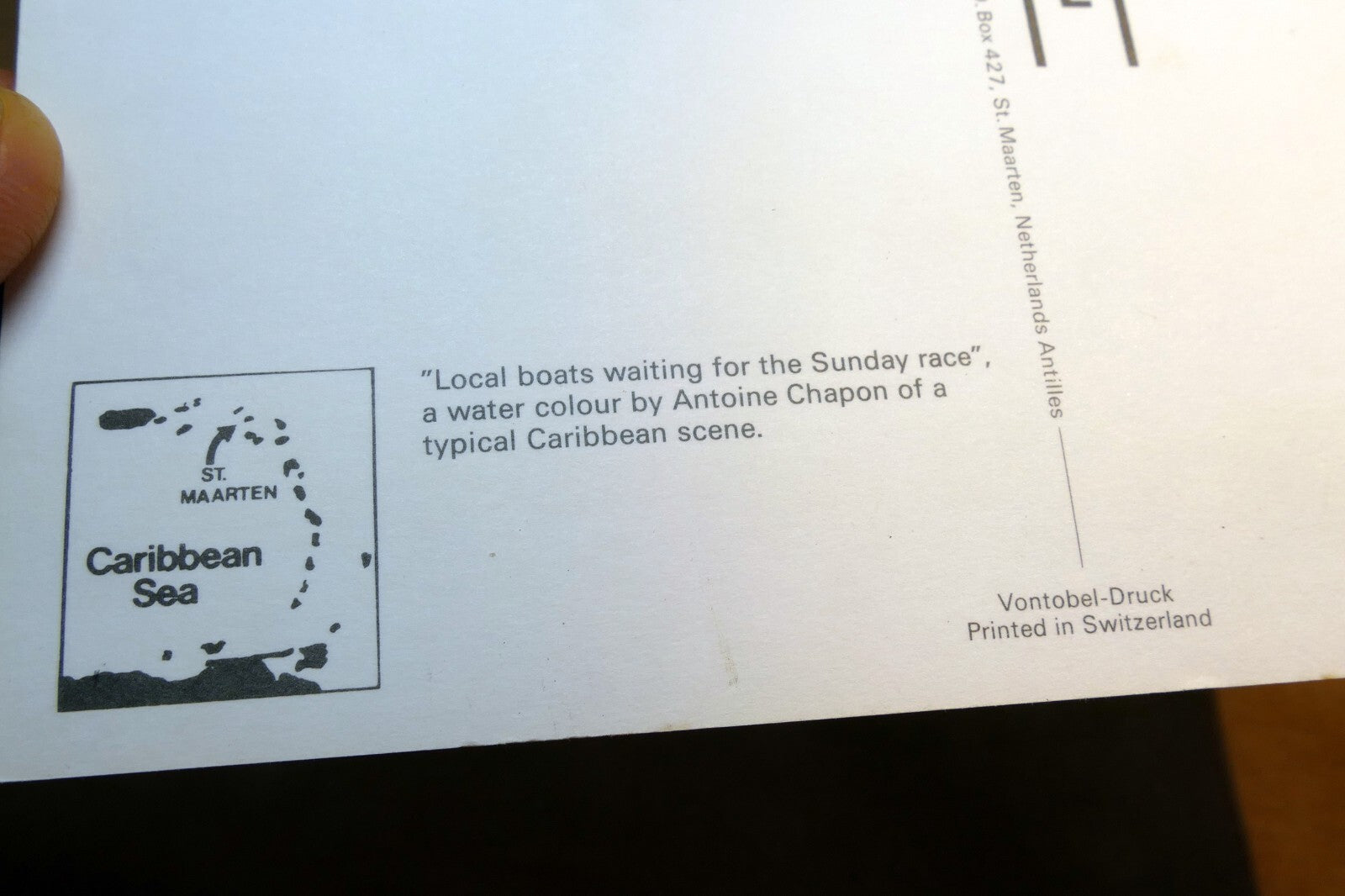 Antoine Chapon Seascape St Martin Watercolor Caribbean Scene Postcard - Posted -